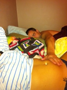 Tonight, however, was a monumental moment between your Dad and I. I swore to him about two nights ago that I could feel you kick with my hand on my belly. So I made him be patient while he sat and waited for you to do it again.. but to no avail. Surprise surprise, Dad fell asleep during said belly touch.