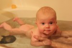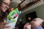 I never knew how fast a baby progressed through the first few months until now. I am just now realizing that a four month old baby can be way advanced in progression than a 3 month old baby. You have started to grasp everything. (Including my hair, which now I know why they call short hair the ‘Mom Cut.’ I plan to stick it out with the long hair.) The moment you grab something you bring it directly to your mouth. Just a few weeks ago this was not all the way accomplished yet. You wanted so badly to have whatever was in your hands in your mouth at the same time, but you couldn’t quite figure out how to get it there. It has been fun to watch you everyday and see you teach yourself this skill. These days I am constantly putting every baby toy we own into your hands to see if you are ready for them. Sometimes I think you get real annoyed with me. You are also beginning to sit up more and more on your own. You still need a lot of assistance but we are getting there. Standing seems to be your main focus. There is no way you can stand on your own but with a little help from Mom or Dad and you are the happiest baby on the block!