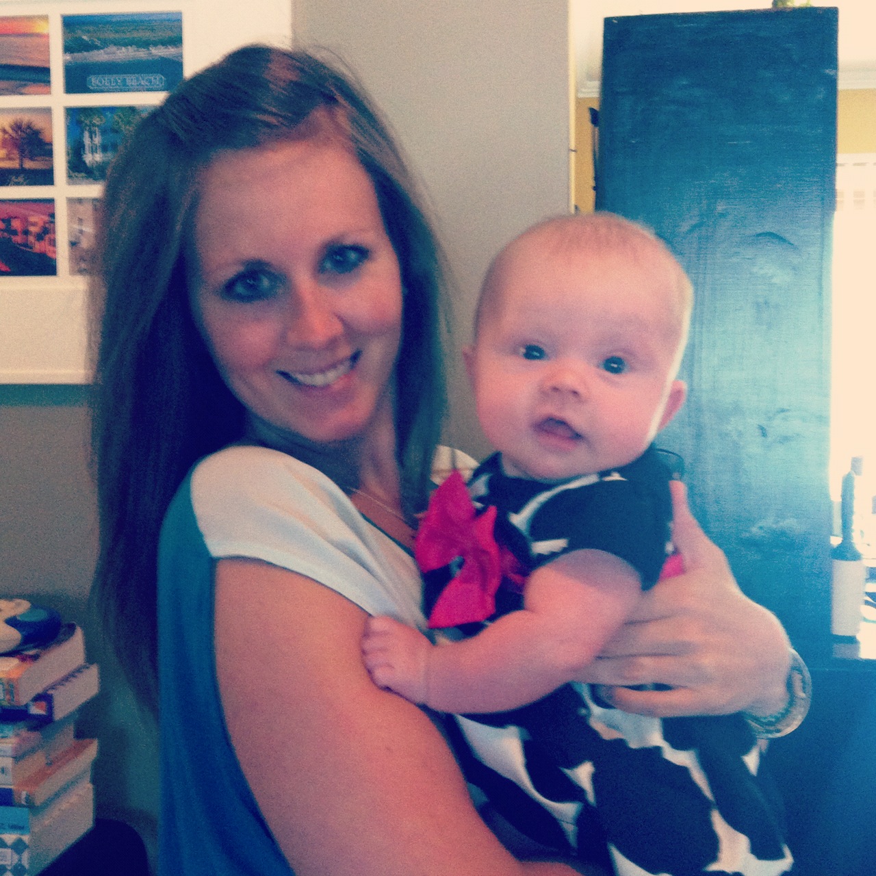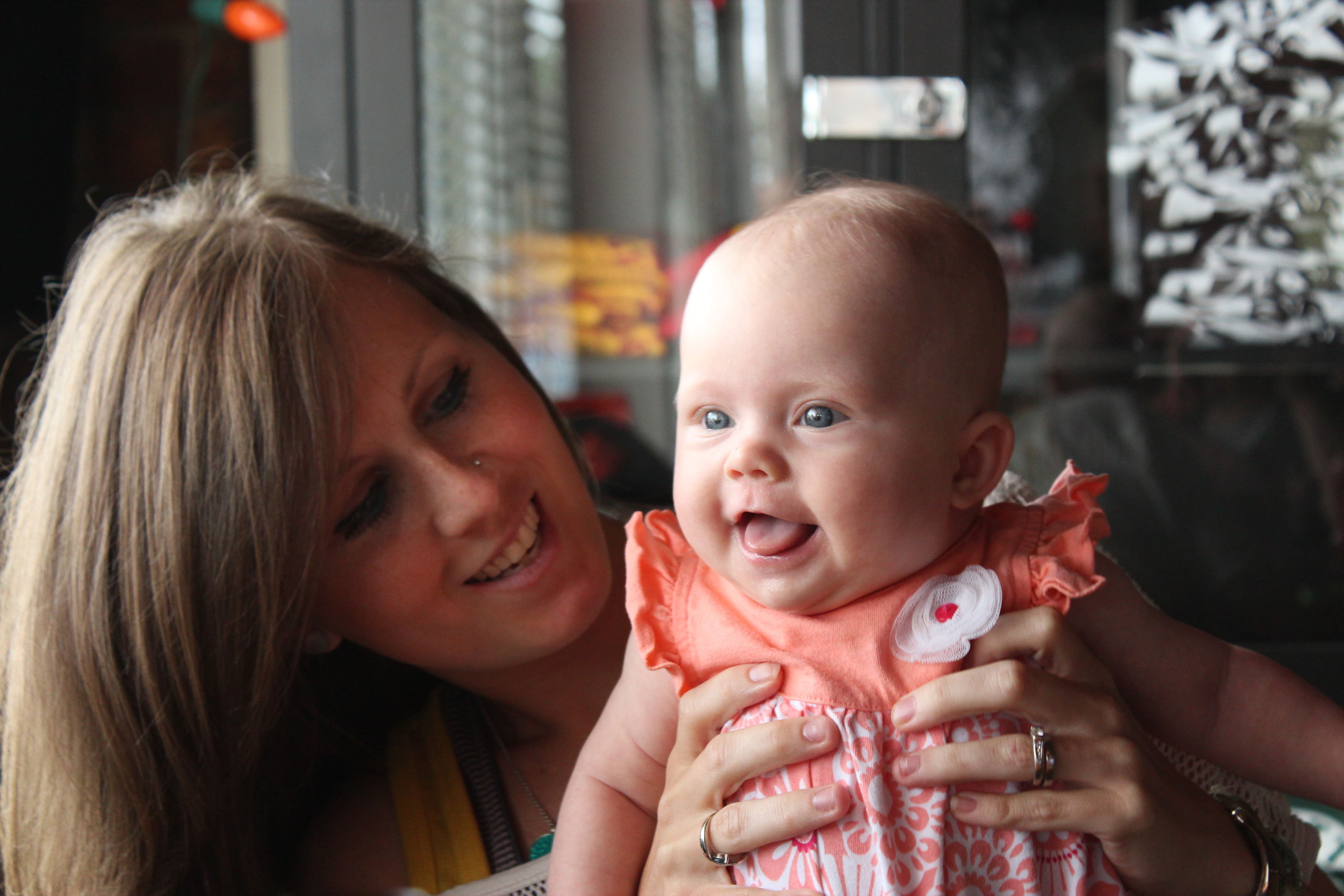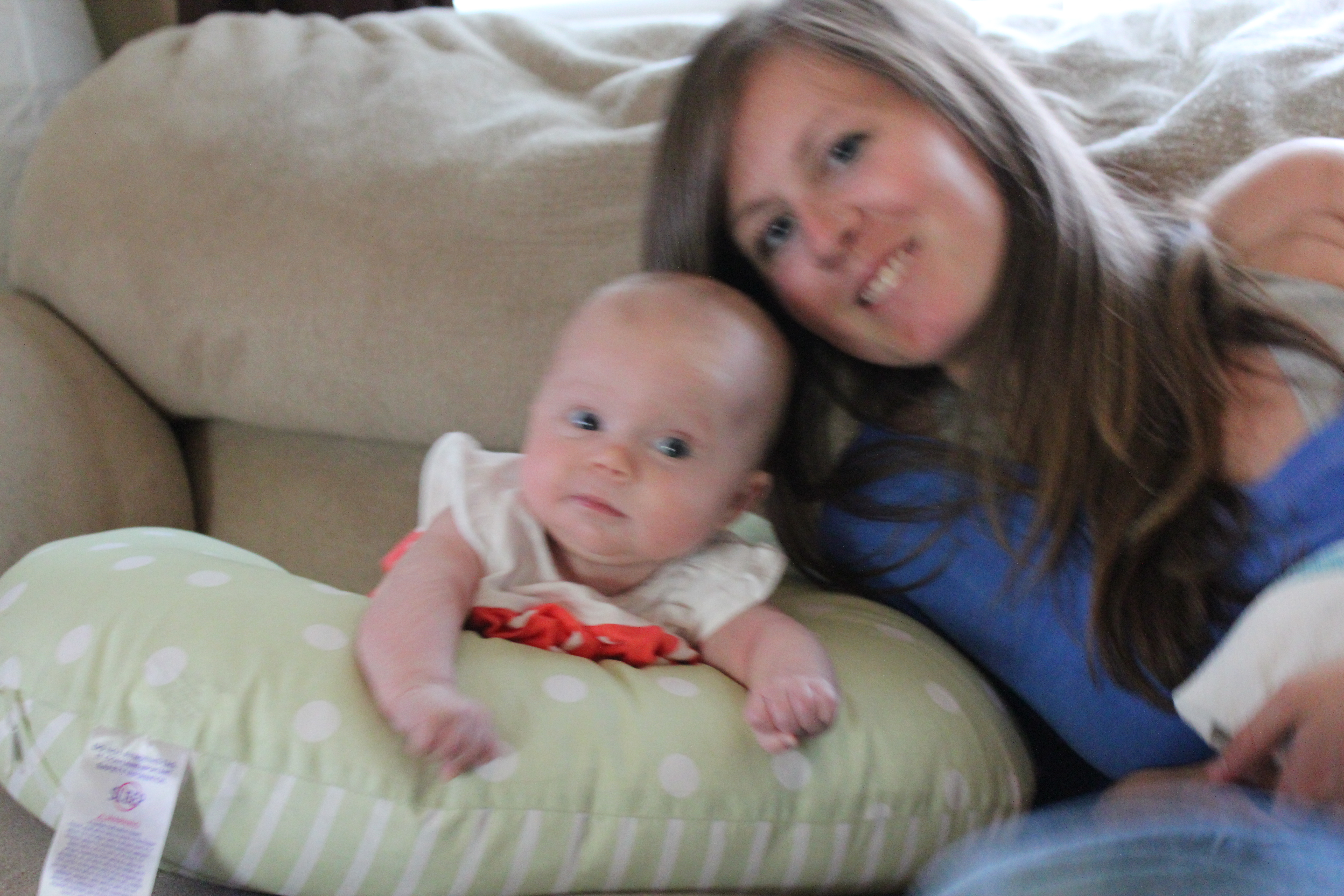 I never knew how fast a baby progressed through the first few months until now. I am just now realizing that a four month old baby can be way advanced in progression than a 3 month old baby. You have started to grasp everything. (Including my hair, which now I know why they call short hair the ‘Mom Cut.’ I plan to stick it out with the long hair.) The moment you grab something you bring it directly to your mouth. Just a few weeks ago this was not all the way accomplished yet. You wanted so badly to have whatever was in your hands in your mouth at the same time, but you couldn’t quite figure out how to get it there. It has been fun to watch you everyday and see you teach yourself this skill. These days I am constantly putting every baby toy we own into your hands to see if you are ready for them. Sometimes I think you get real annoyed with me. You are also beginning to sit up more and more on your own. You still need a lot of assistance but we are getting there. Standing seems to be your main focus. There is no way you can stand on your own but with a little help from Mom or Dad and you are the happiest baby on the block!