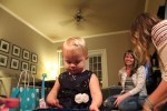 We started Saturday off by going to the Grandparent’s hotel for breakfast. Then lunch at Big Mike’s Bar-B-Que. (One of HeyHey’s favorites.) After your nap we then got ready for dinner and went to Christiano’s Restaurant for our birthday celebration. We had so much fun and it was the perfect place to have dinner. Afterwards, we came home and had our close friends over with everyone to have cake and ice cream and open presents! You LOVE opening presents. As you are opening you always say “What is it?” and as you continue, you have your mouth opened big and wide saying “Woowww” the more you see what’s inside. We had Kerina, Scotty, Cameron, Malorie, Sandi, and Chuck over along with your grandparents. We stuck some candles in a King Cake (a Mardi Gras must have down in Louisiana) and sang happy birthday. It was nice, small, and you enjoyed it and that’s all that matters.
